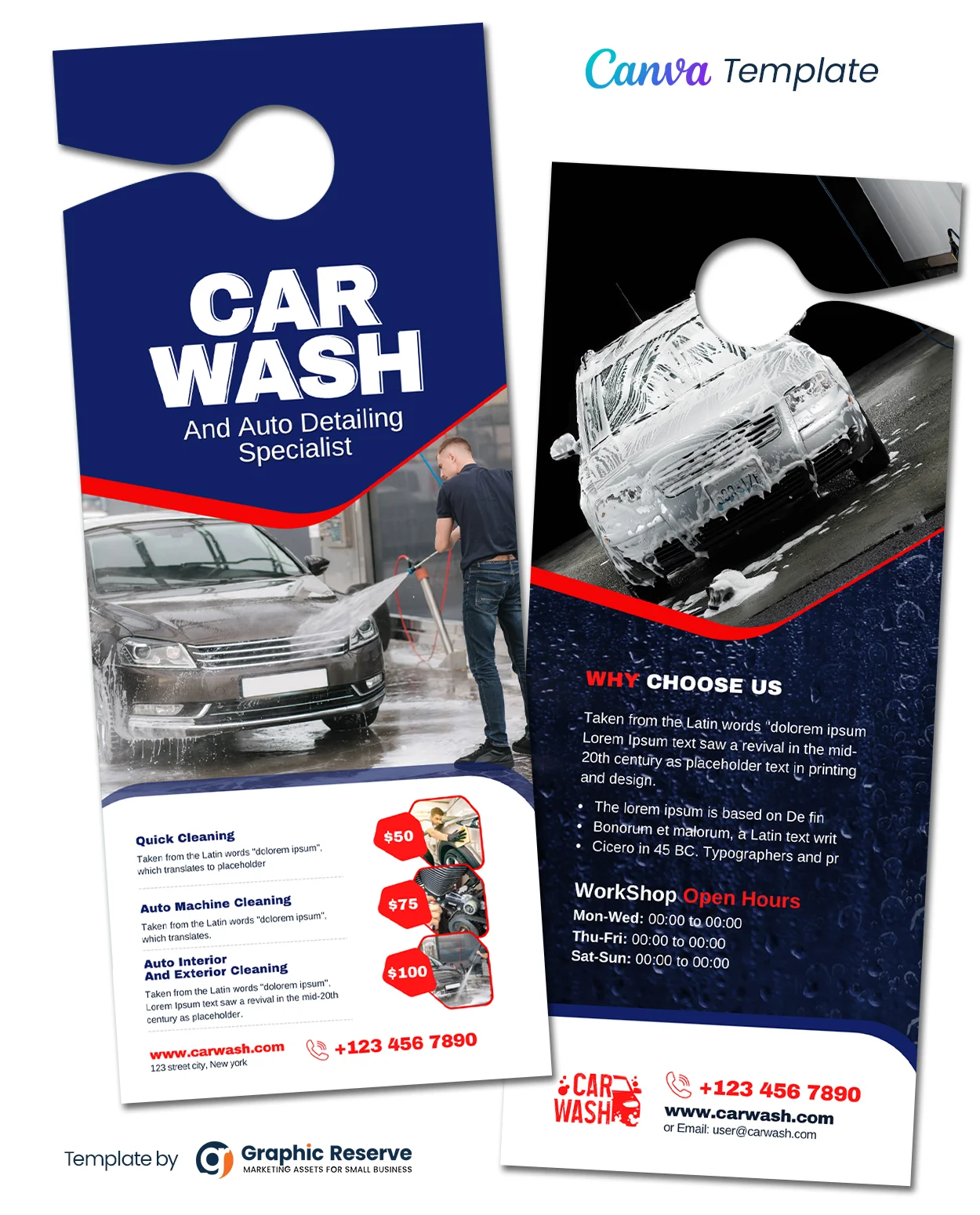 Car Wash Door Hanger Design Template for Canva – Professional Advertising Solution