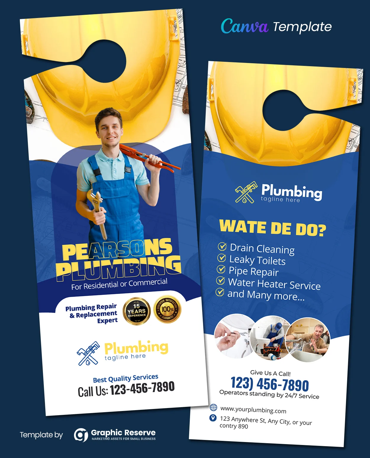 Promote your plumbing services with this custom-designed door hanger template, fully editable in Canva. Tailored for local businesses, this template allows you to highlight your services, special offers, and contact details with ease, helping you connect with potential customers.