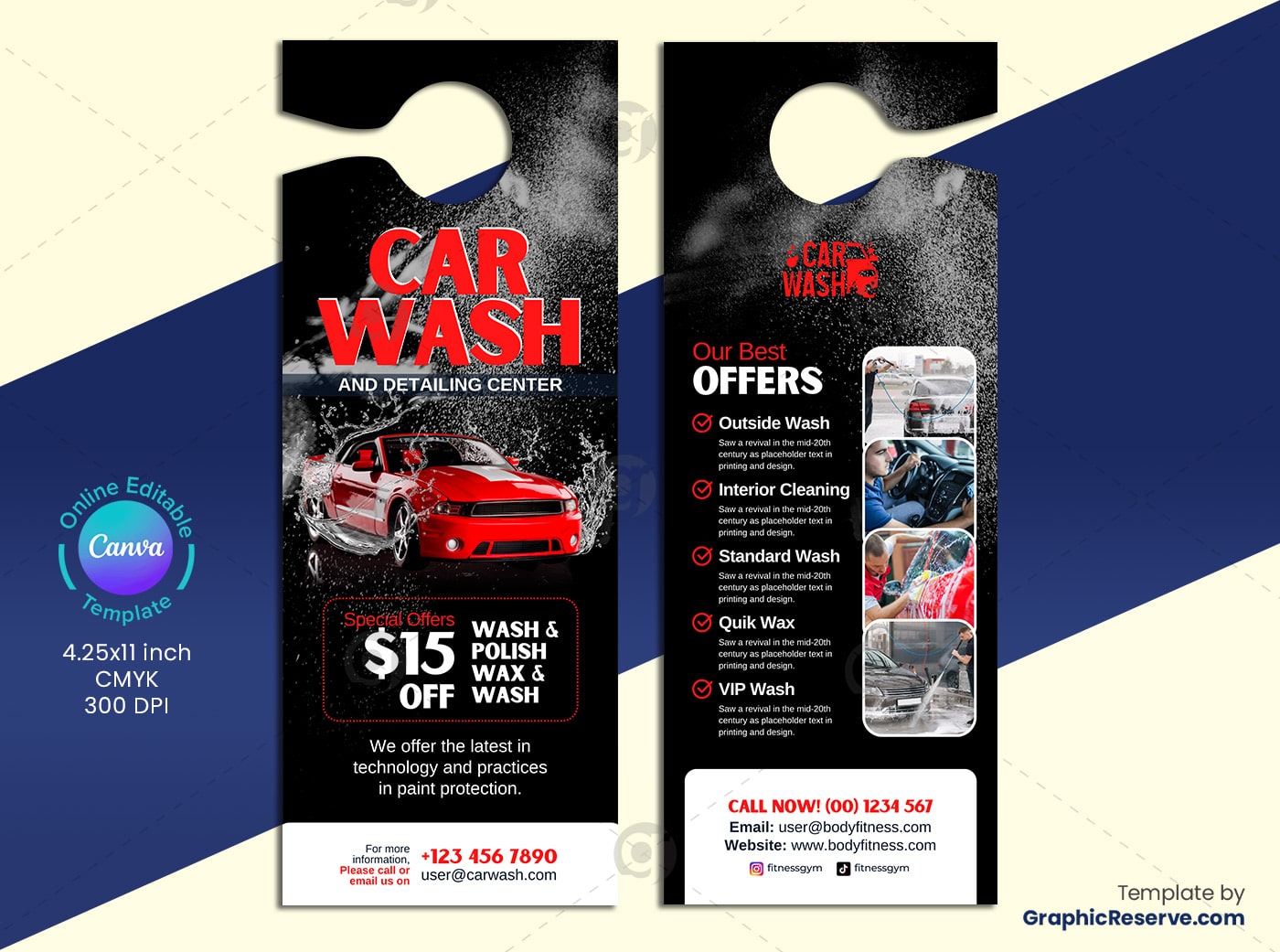 - Editable in Canva: Effortlessly customize text, images, colors, and logos to reflect your car wash branding.