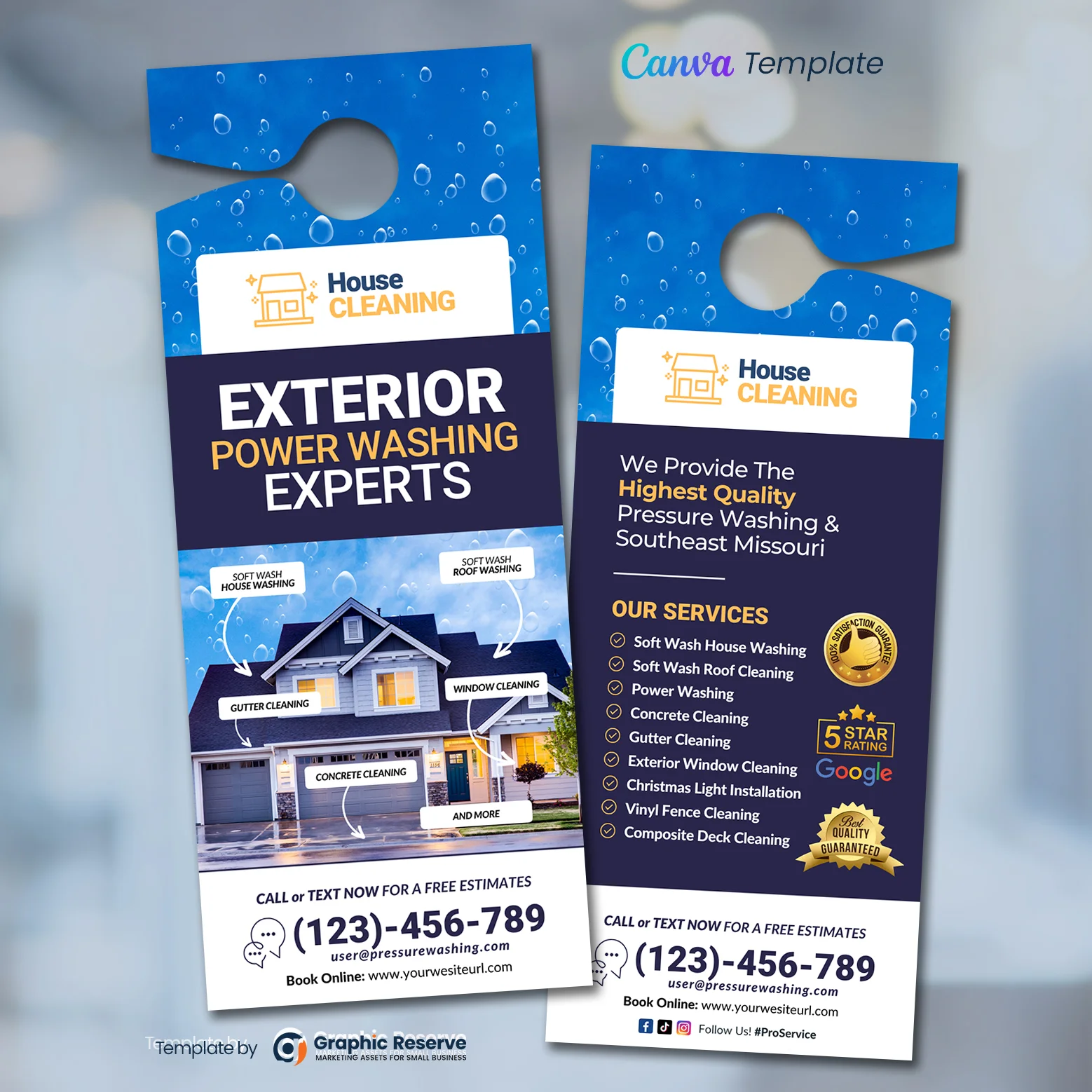 Exterior Cleaning Canva Door Hanger This template is designed for interior and exterior washing and cleaning services. You can definitely use these canva door hangers for any other services if you want. Fully editable, image/logo can be quickly added or replaced in Canva