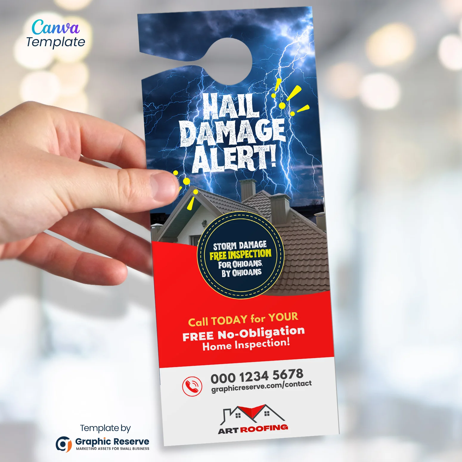 Hail Damage Alert Roofing Door Hanger Template – Easy-to-Edit Canva Design