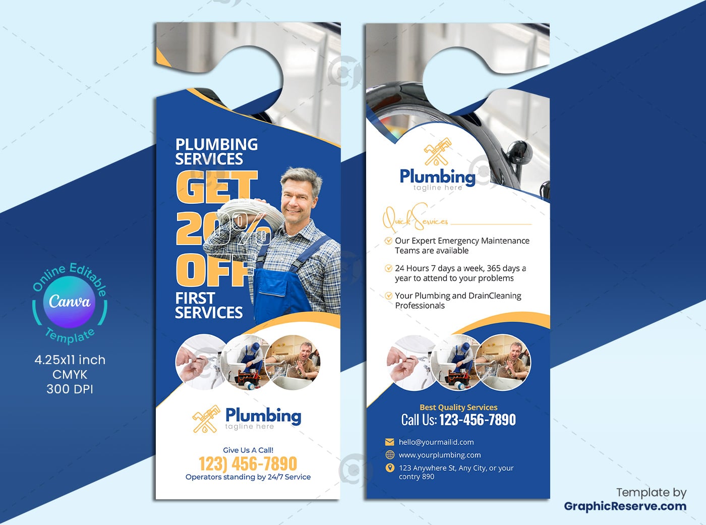 Modern Plumbing Door Hanger Canva Template for Service Advertising