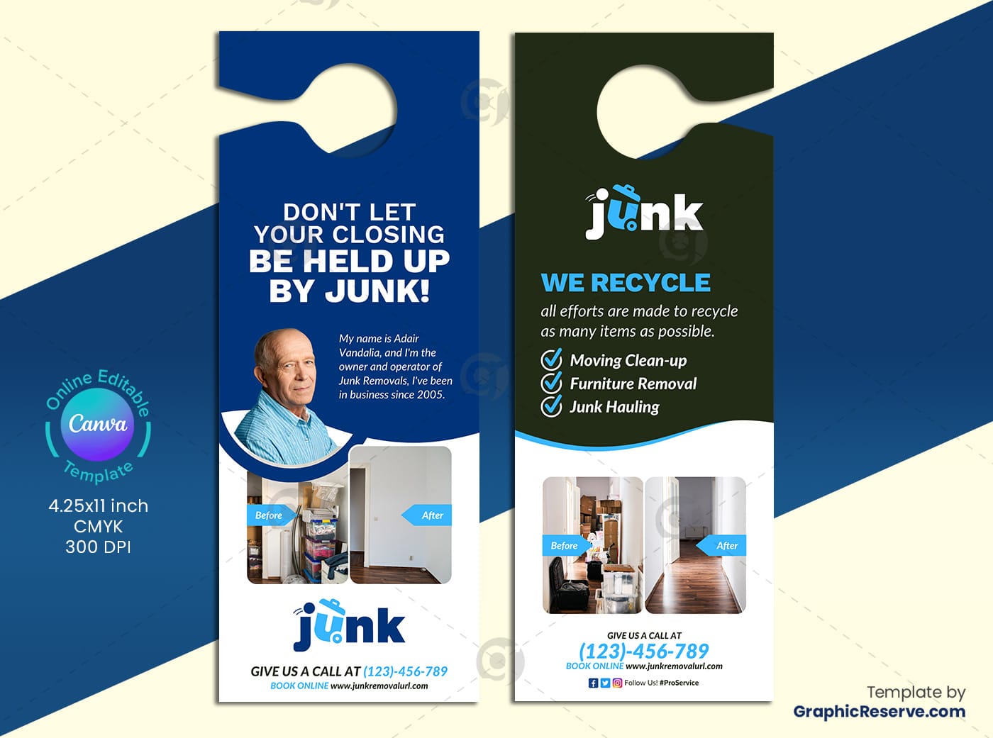 - Print-Ready: Standard door hanger size (4.25” x 11”) for simple printing and distribution.