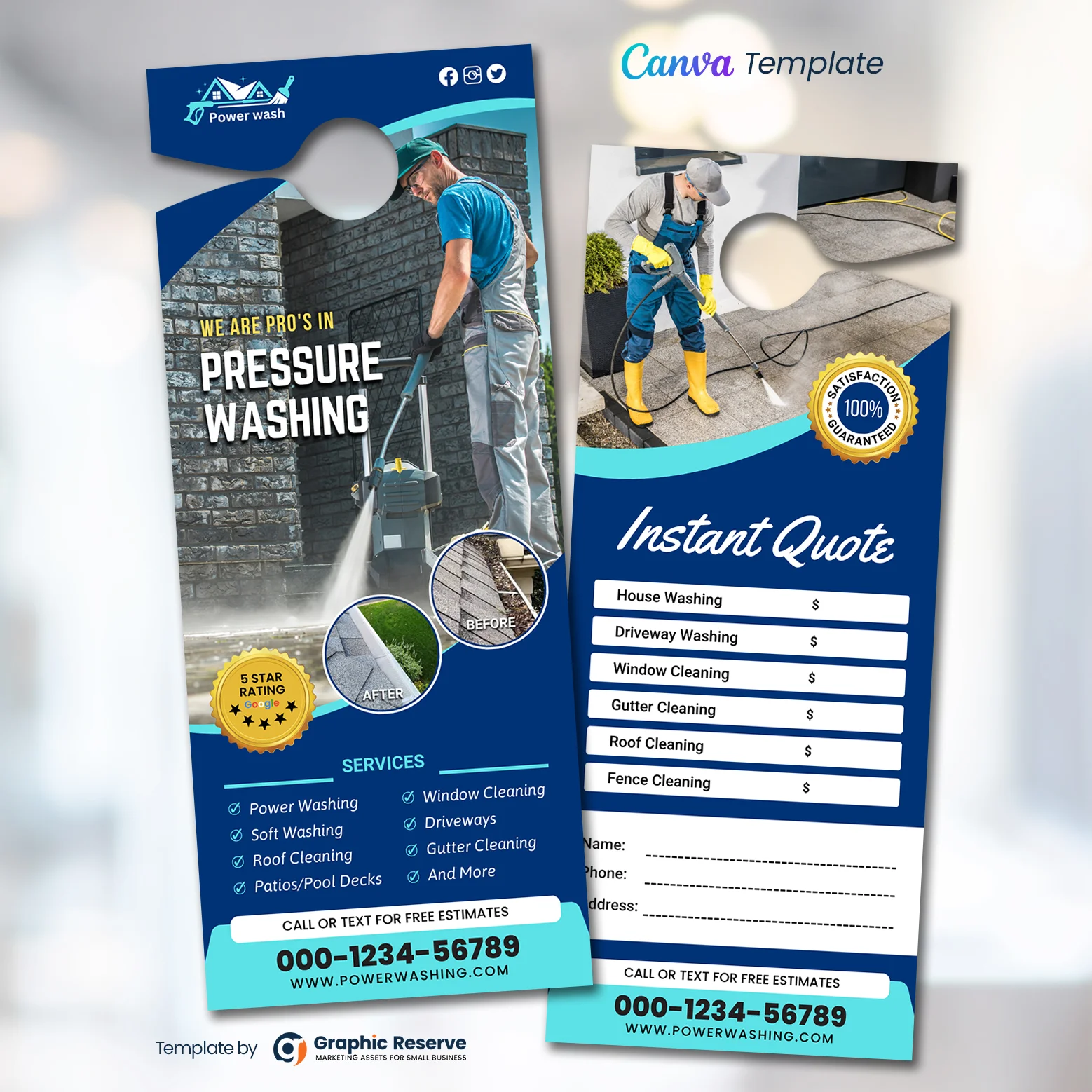 Pressure washing instant quote door hanger design template.
