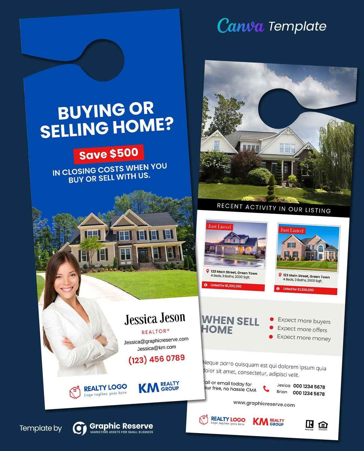 Real Estate Door Hanger Canva Design TemplateTemplate (Co-branding). Door hanger for realtors designed on Canva. Print ready CMYK output possible.