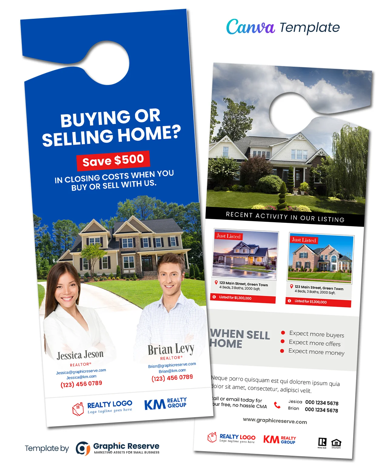 Real Estate Door Hanger Canva Design TemplateTemplate (Co-branding). Door hanger for realtors designed on Canva. Print ready CMYK output possible.
