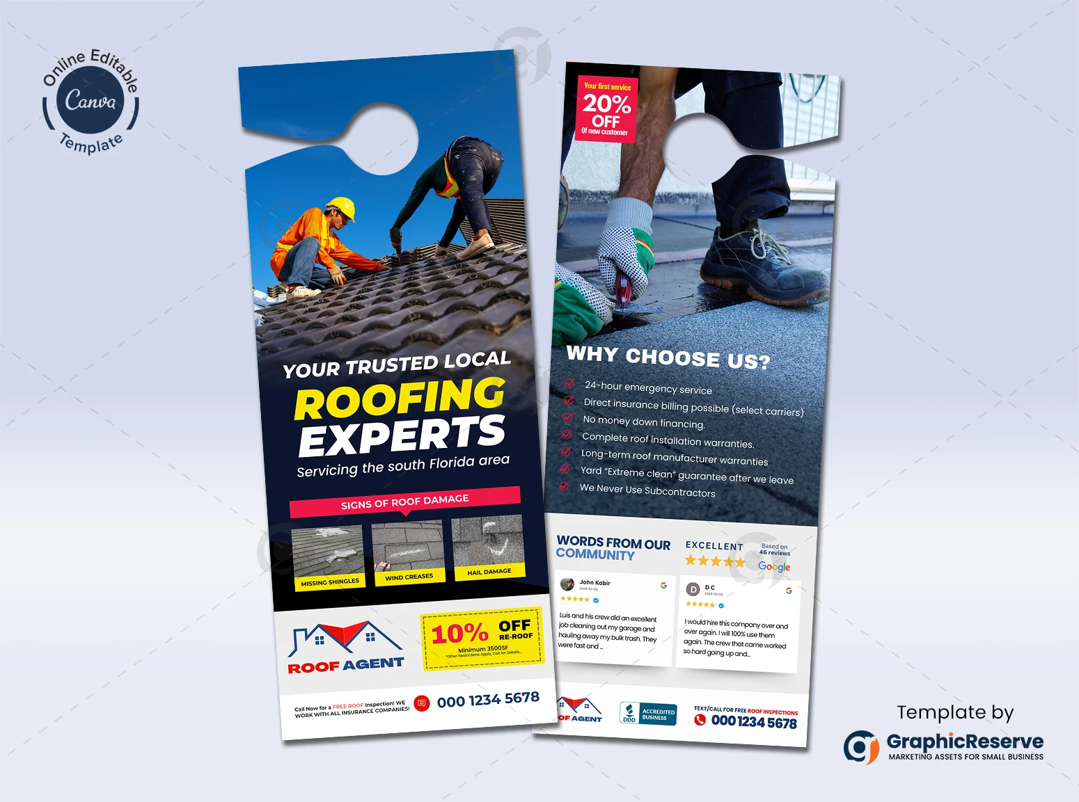 Download this Roofing Advertising Door Hanger Template today to create impactful, professional marketing materials that turn potential leads into loyal customers!