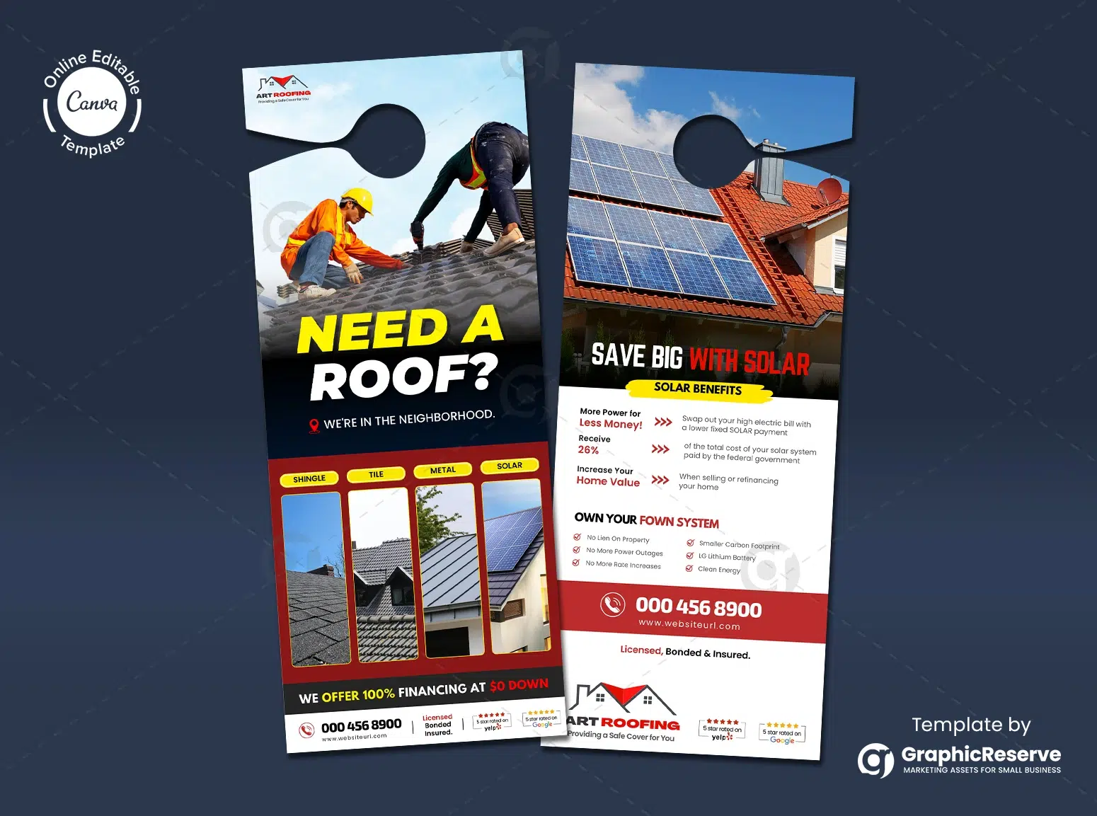 Roofing Business Marketing Door Hanger Canva Template | VistaPrint Standard Size (4.5×11 in)