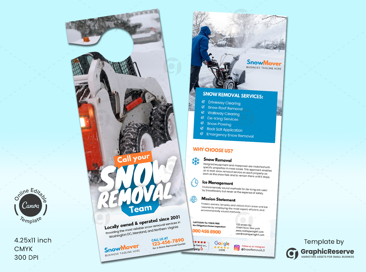 Snow removal door hanger design Canva template.